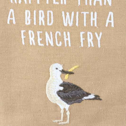 A BIRD WITH A FRENCH FRY KITCHEN TOWEL