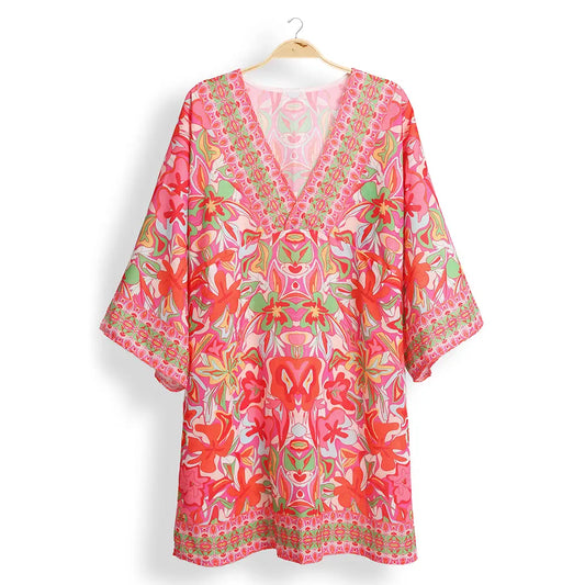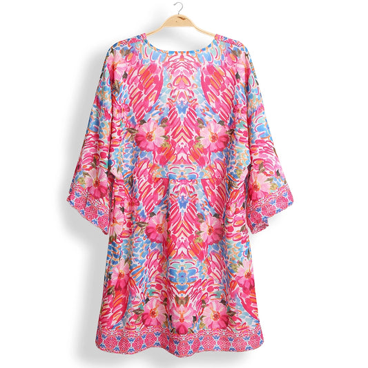 FUCHSIA FLORAL PRINT COVER UP DRESS