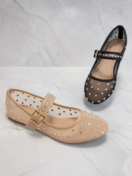 RHINESTONE MESH MARY JANE FLATS