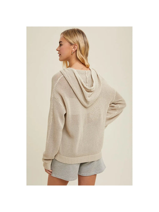 NICOLE CROCHET ZIP-UP SWEATER HOODIE