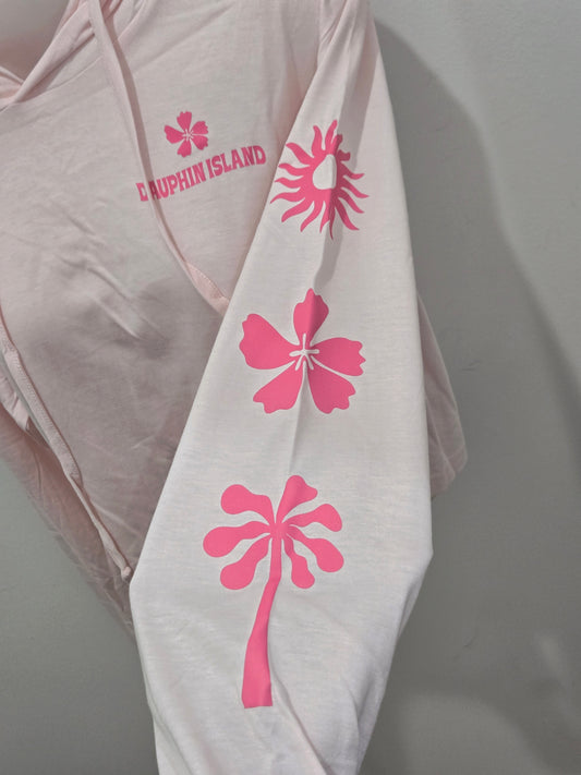HAWAII HIBISCUS FLORAL EMBROIDERED OVERSIZE HOODIE