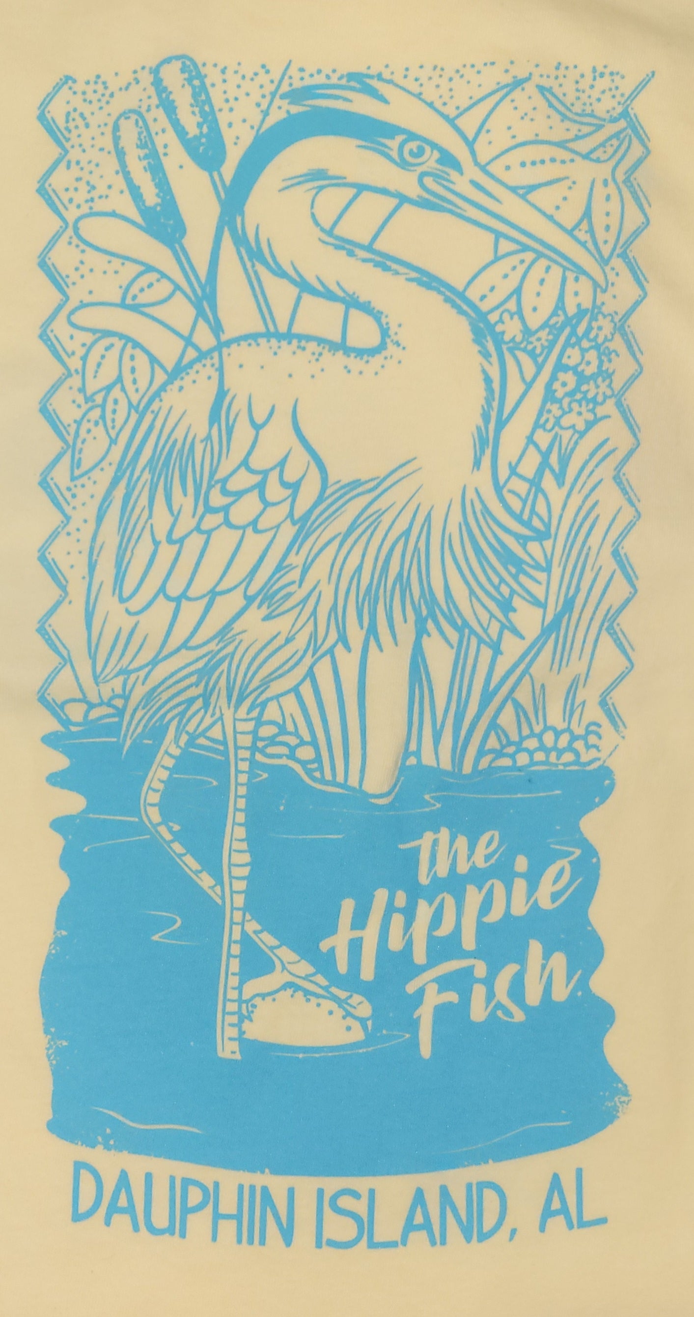 Make a statement in this one-of-a-kind HIPPIE FISH HERON T-Shirt! Made with 100% pre-shrunk cotton for superior comfort, this Comfort Colors brand T-shirt features an original design of a blue heron with poppin' colors for a signature style. Spice up your wardrobe with this cool, hippy-chic tee!