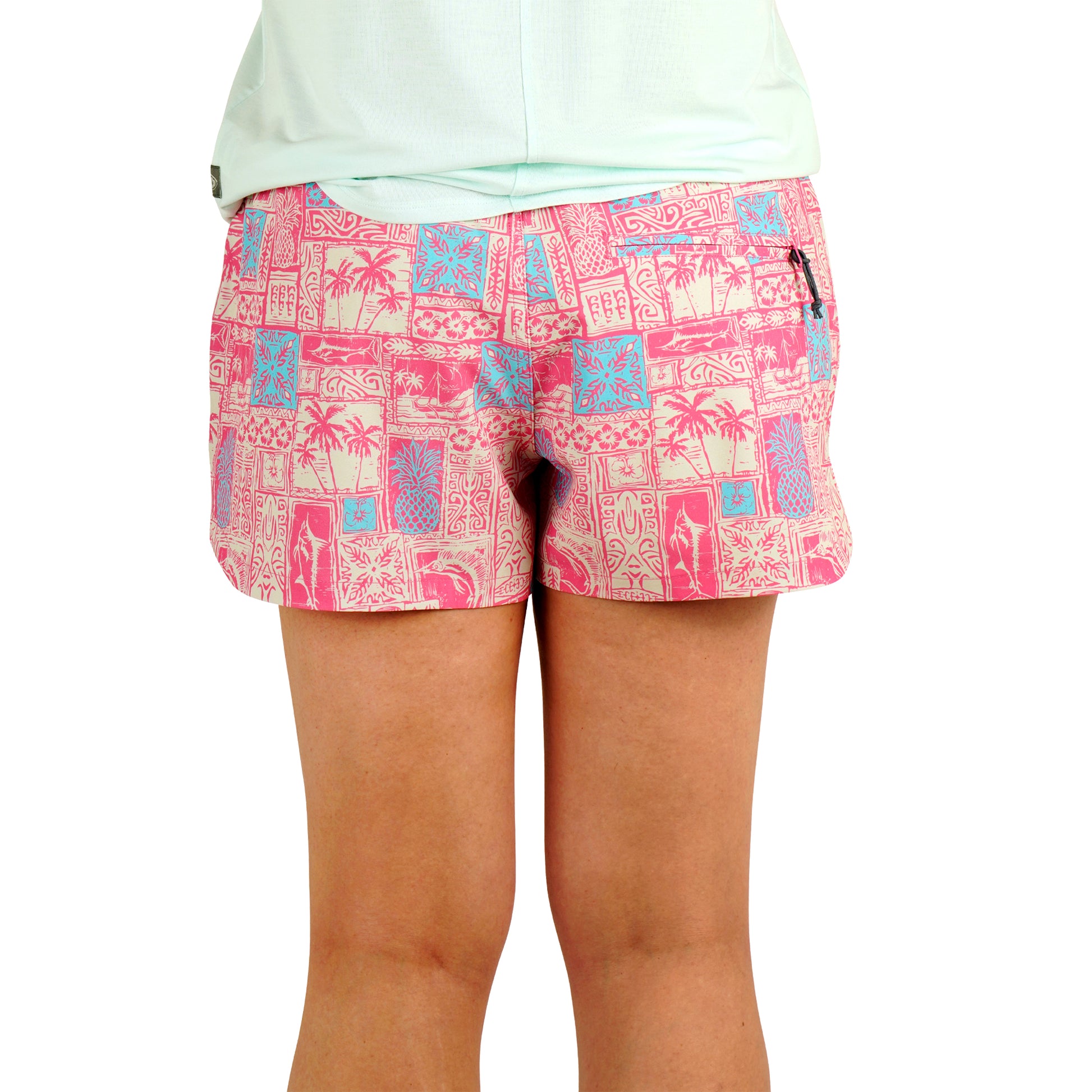 "These AFTCO WOMEN'S STRIKE SHORTS are the ultimate in comfort and performance. Made with stretch woven fabric that is sustainable and UPF 50 rated for maximum sun protection. PFAS free DWR coating for eco-friendly wear. Convenient features like hand pockets and a back zipper pocket, with a 3.5" inseam, make these shorts a must-have. With a stylish sublimated print and an active fit, you'll be ready for any adventure. (Seriously, you won't want to take these off!)"