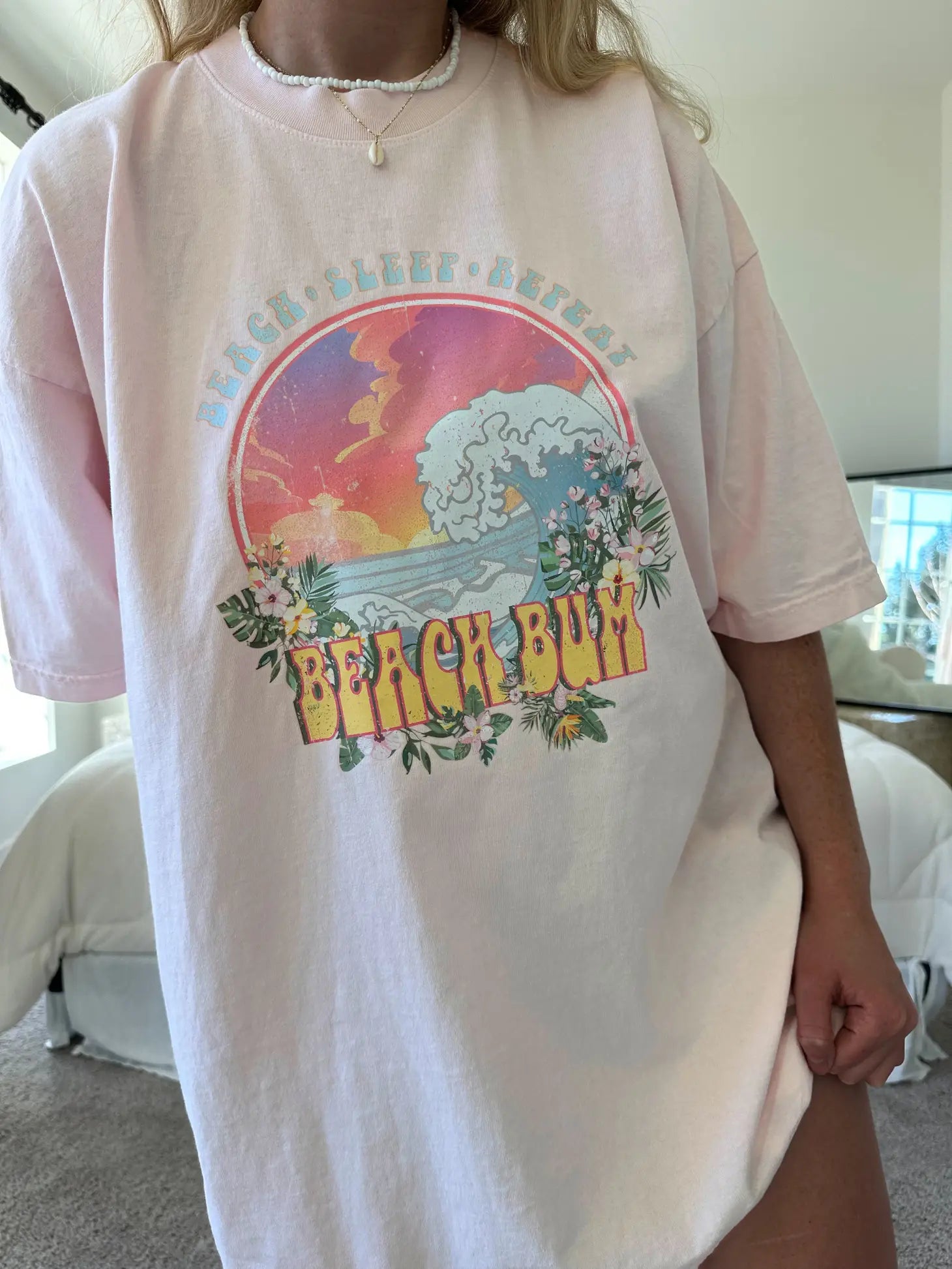 Take a break from life and channel some beach vibes with this luxuriously soft BEACH BUM TEE! Made in the USA with quality 6.5 oz/yd2 cotton, it's designed to not only look cute but last. Available in light pink with hot pink thread, it'll be your go-to for days spent in the sun!