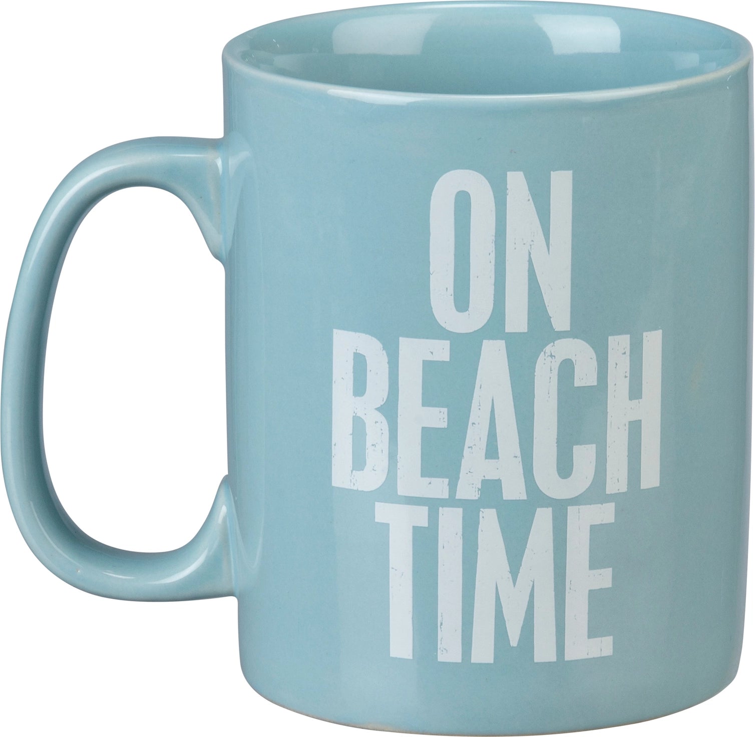 Sip your morning brew in style with our BEACH TIME MUG. Made of stoneware, this distressed design features a playful "On Beach Time" sentiment. With a 20 oz capacity, it's perfect for your daily dose of caffeine. Plus, it's microwave, oven, dishwasher, and food safe! (Coffee not included, sorry.)