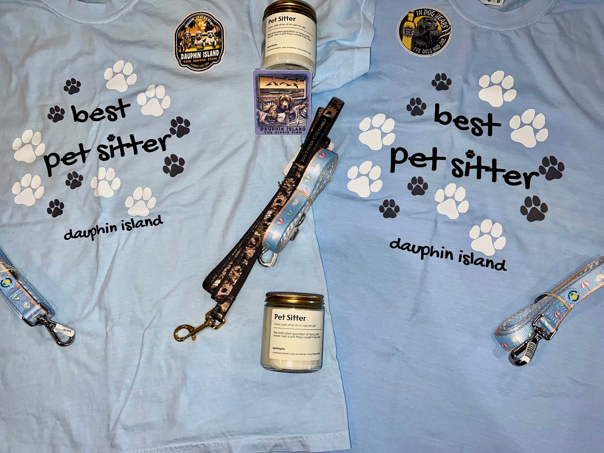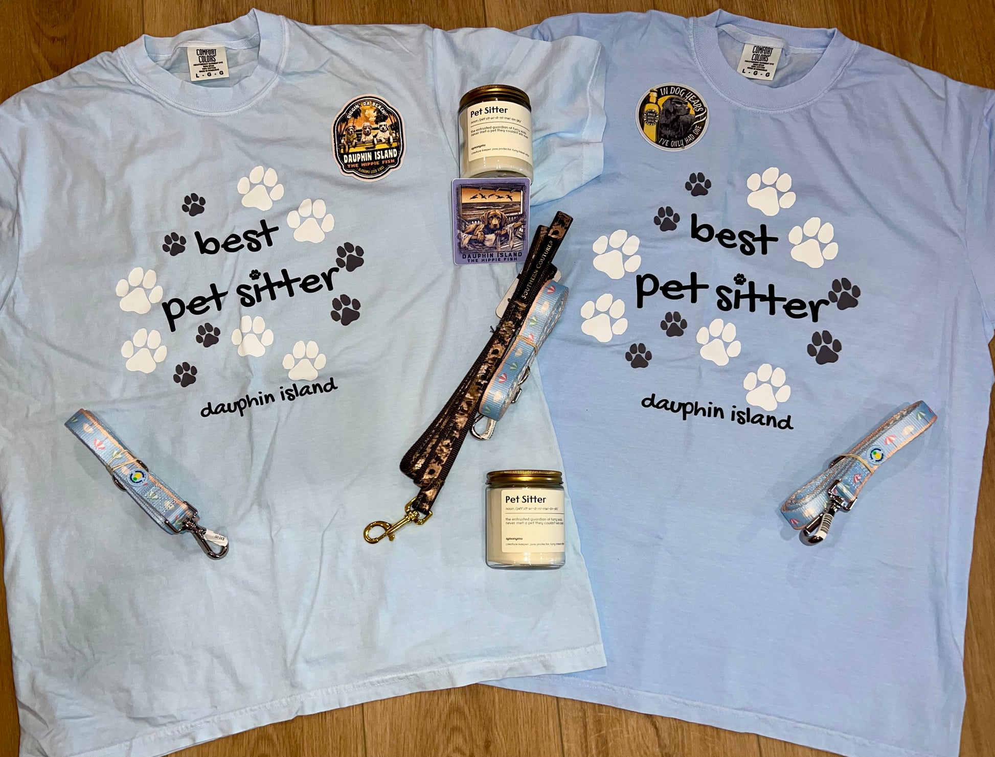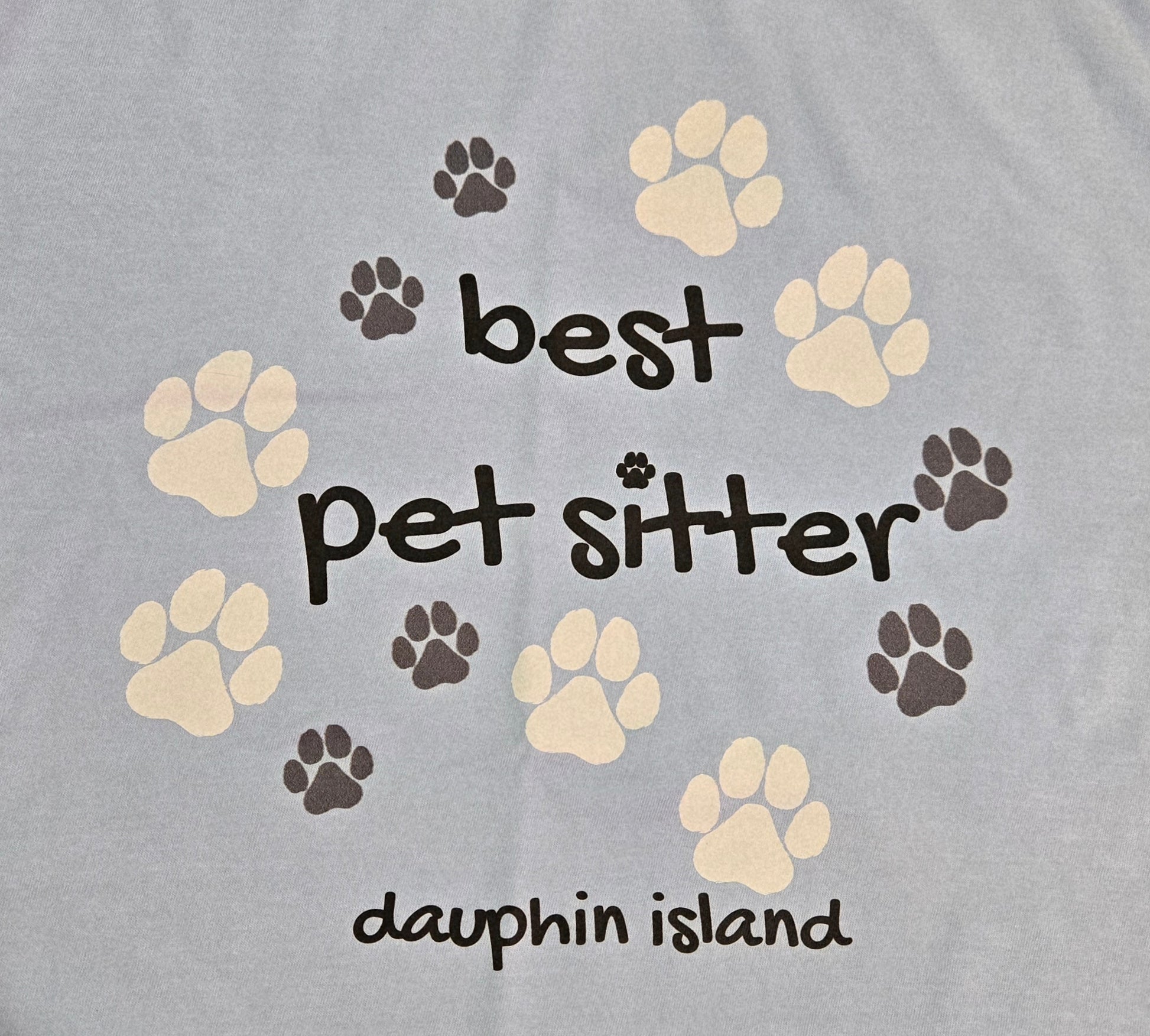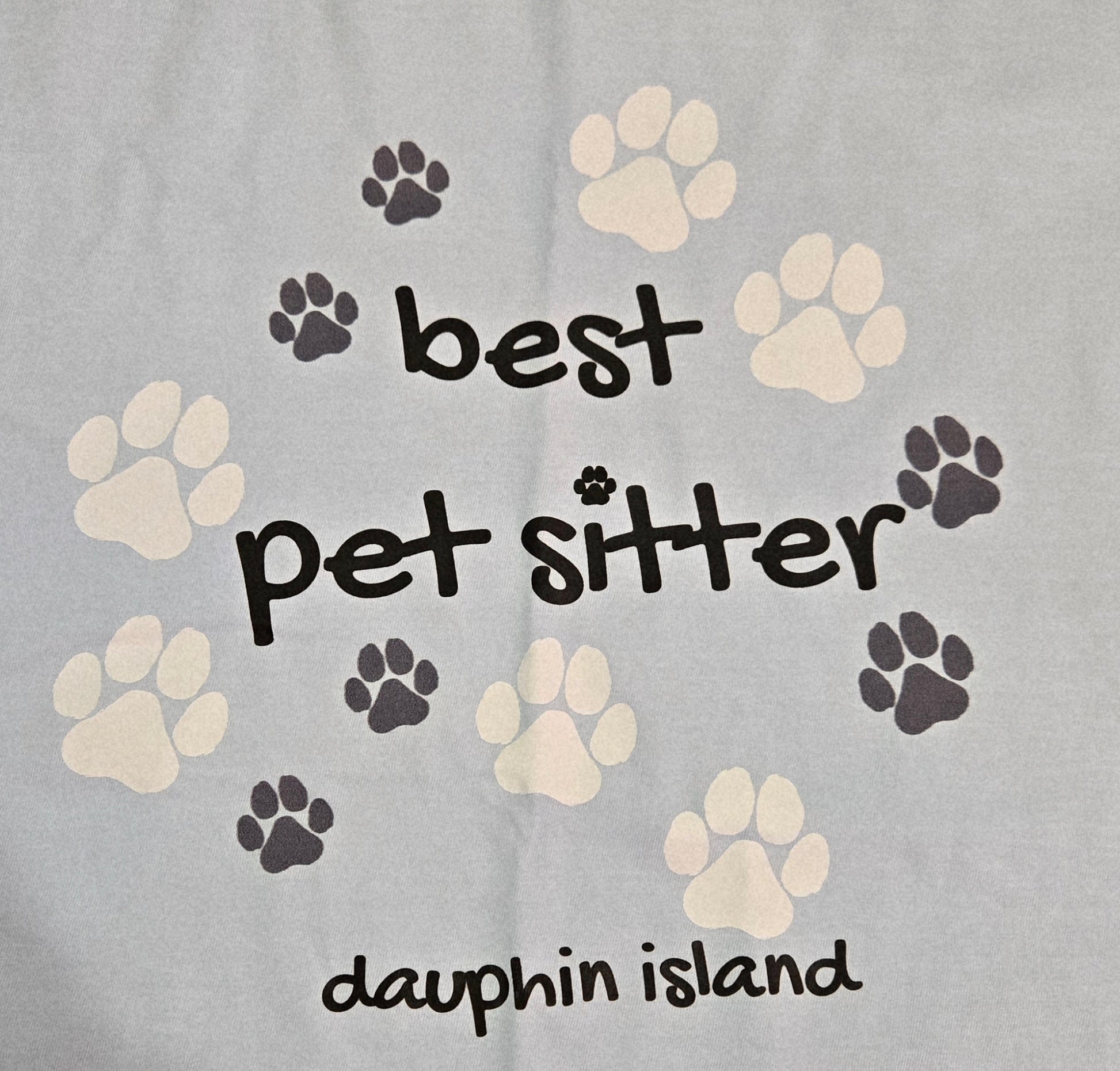 Celebrate your favorite pet sitter with this playful tee, designed and printed by a local island artist. Made from 100% pre-shrunk cotton, it offers a comfy fit that lasts. The front features a charming design surrounded by paw prints, perfect for showing off your love for furry friends in style.