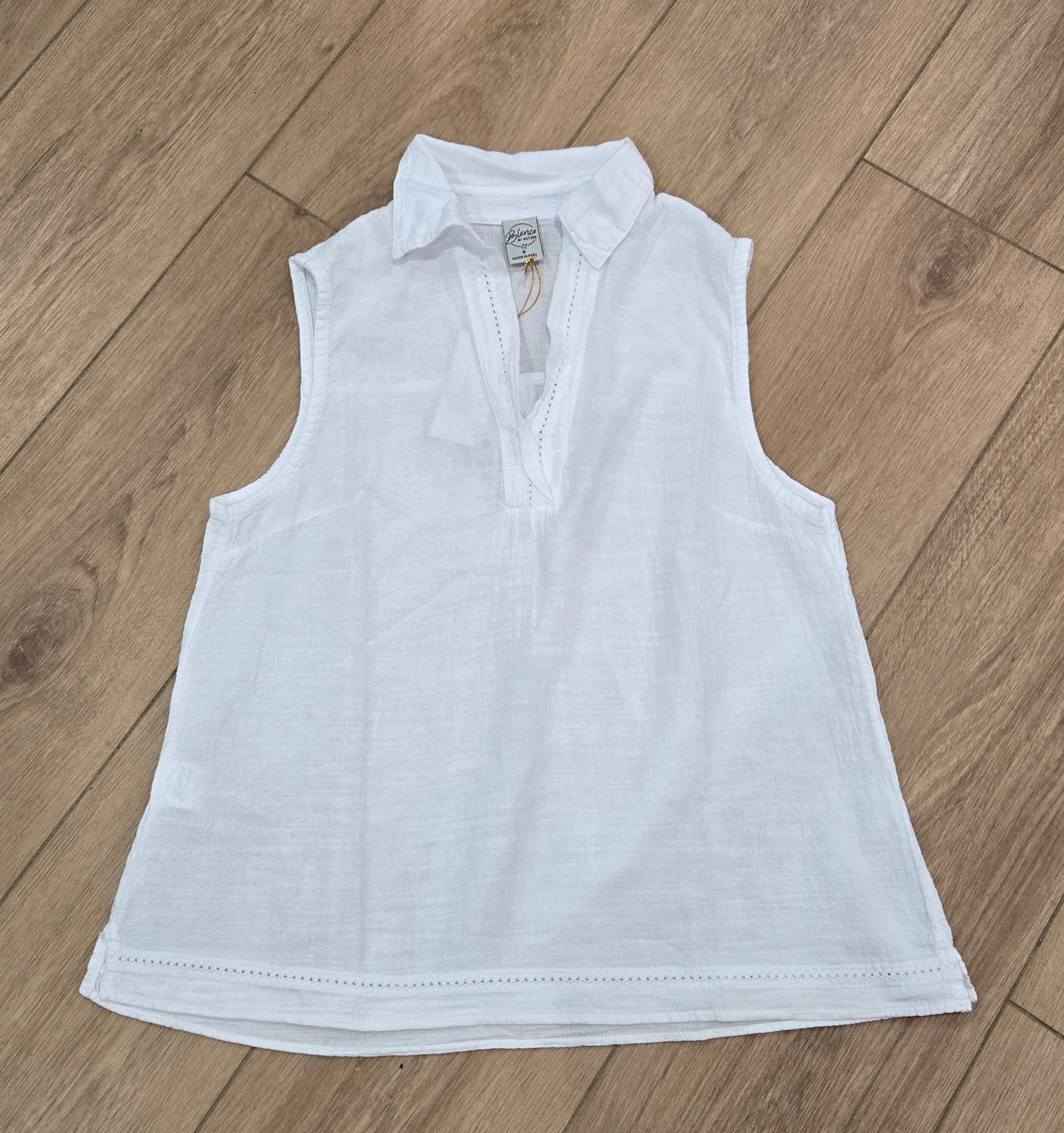 Stay cool and chic with our CROCHET DETAIL SLEEVELESS TOP featuring 100% cotton material and delicate crochet detailing. Embrace a playful and stylish look with this unique top!