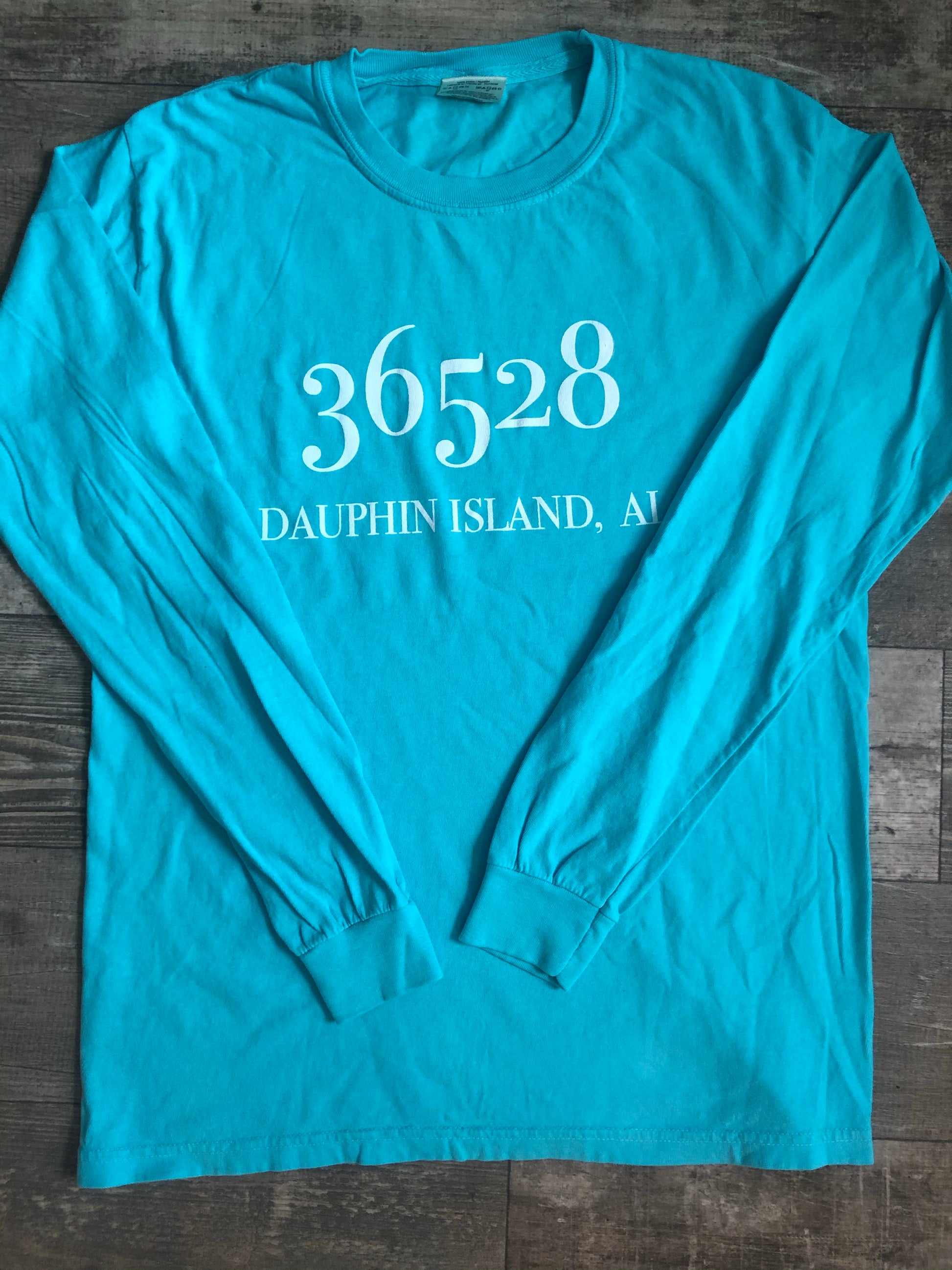 Look cool while wearing your Dauphin Island pride with this comfy long sleeve t-shirt! It's made with Comfort Colors 100% cotton and pre-shrunk, so it'll last as long as your island love. Show off your 36528 zip code with style!