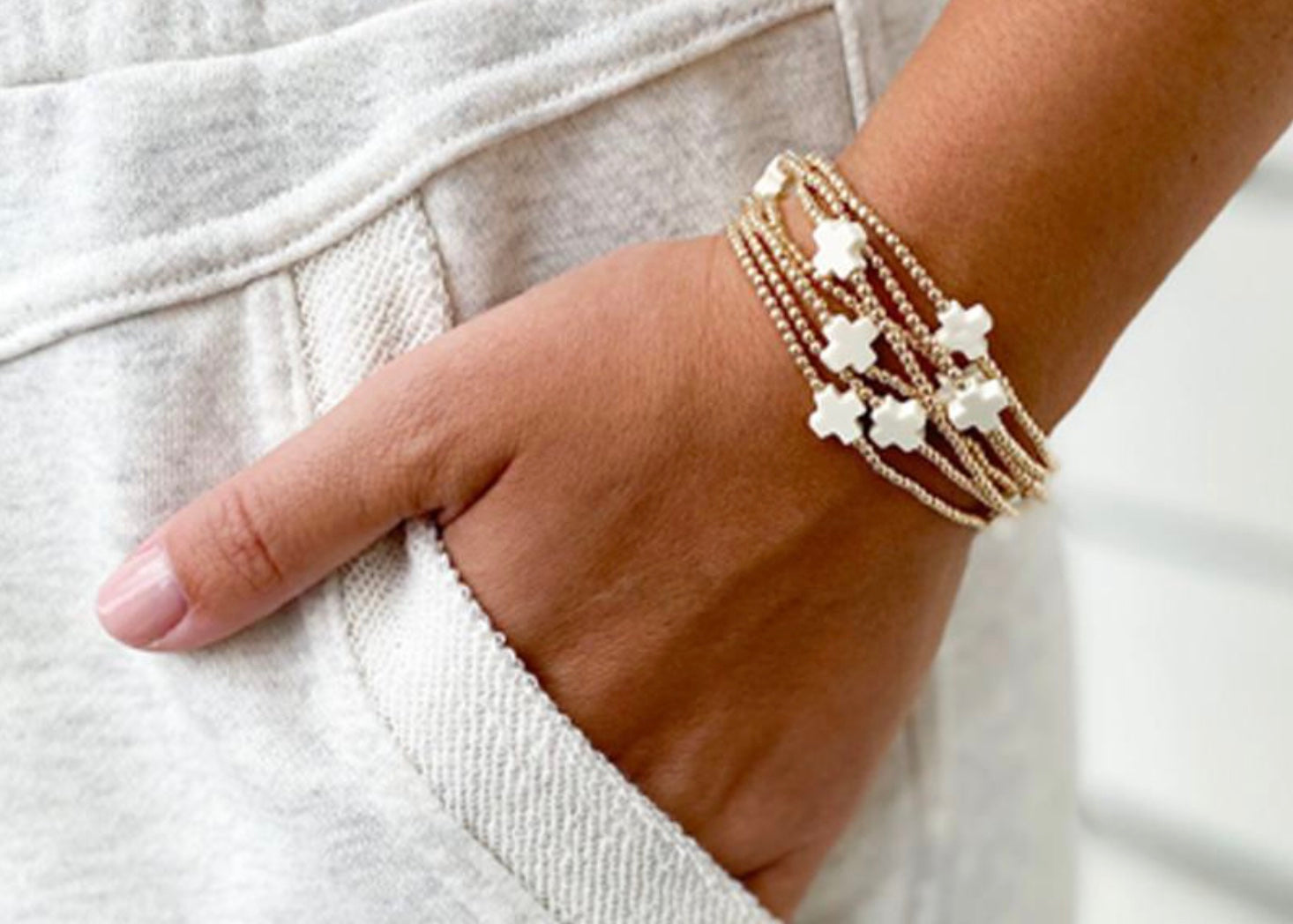Enewton is committed to quality materials, such as gold-filled and semi-precious gemstones. They design for worry-free wear. Go ahead and swim, sweat and shower in style!