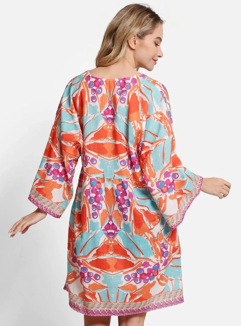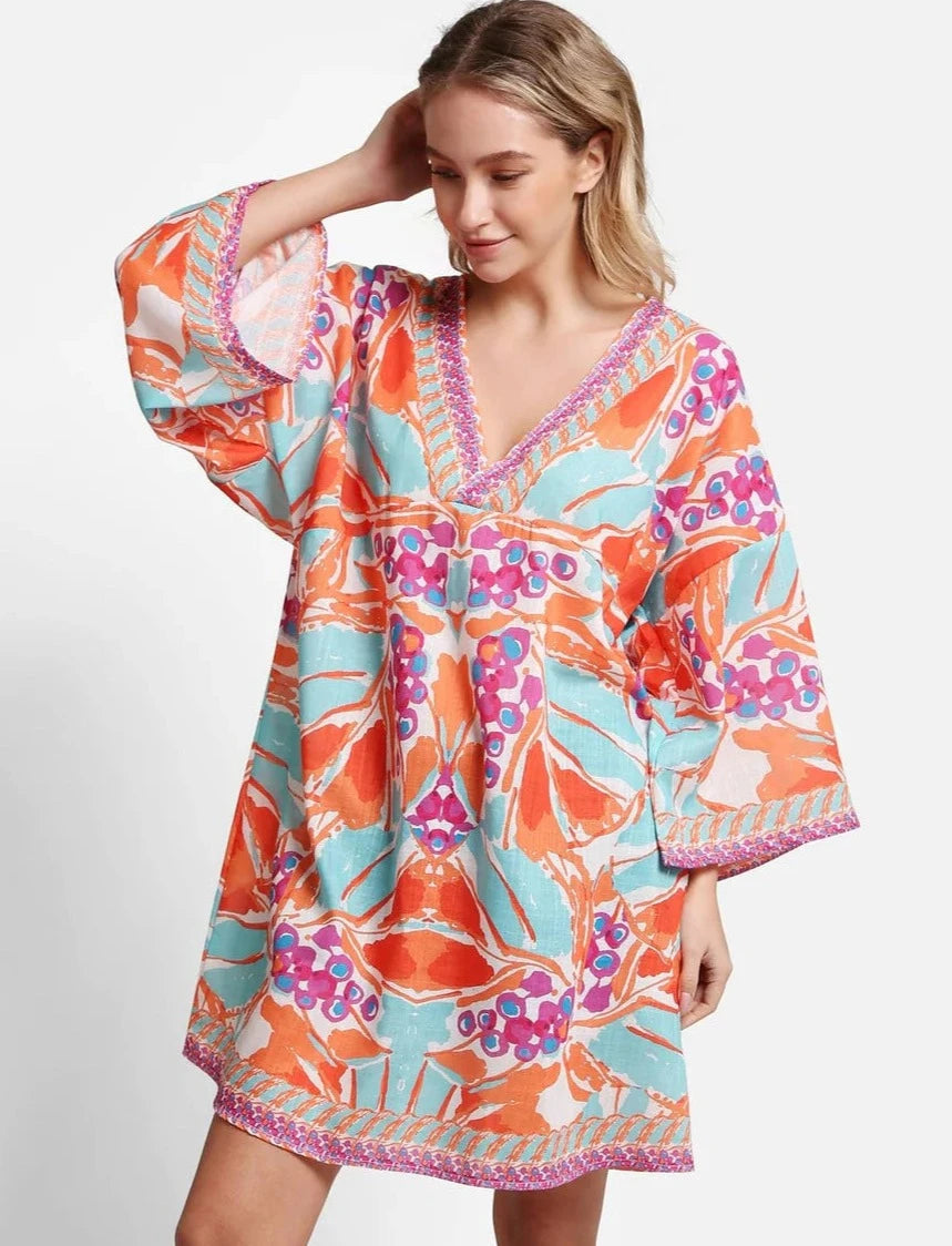 Introducing the EVERLY FLORAL COVER UP DRESS - the perfect combination of style and function! Made with 70% polyester and 30% cotton, this one fits most size dress offers a flattering fit while also serving as a fun and fashionable beach or poolside cover up. Say goodbye to boring cover ups and hello to a unique option!