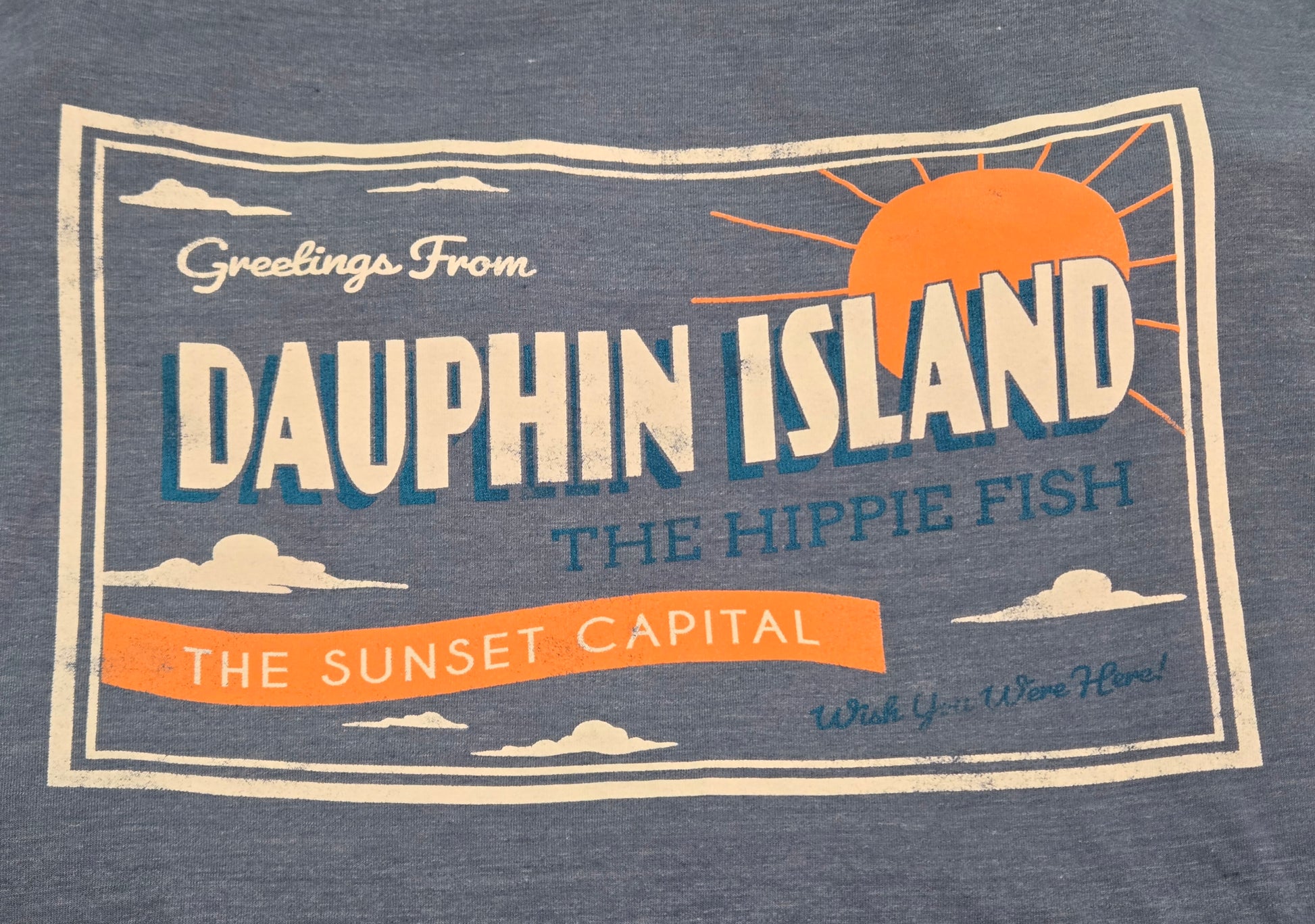 Stay cozy and stylish with the Greetings Postcard Hoodie, featuring a playful "Greetings From Dauphin Island" postcard graphic on the back and a charming small graphic on the front. Made from a lightweight tri-blend fabric, this hoodie offers soft comfort and breathability. Its rope-style drawstring adds a fun touch, while the front pocket keeps your hands warm or your essentials close. Perfect for casual days or breezy island evenings.
