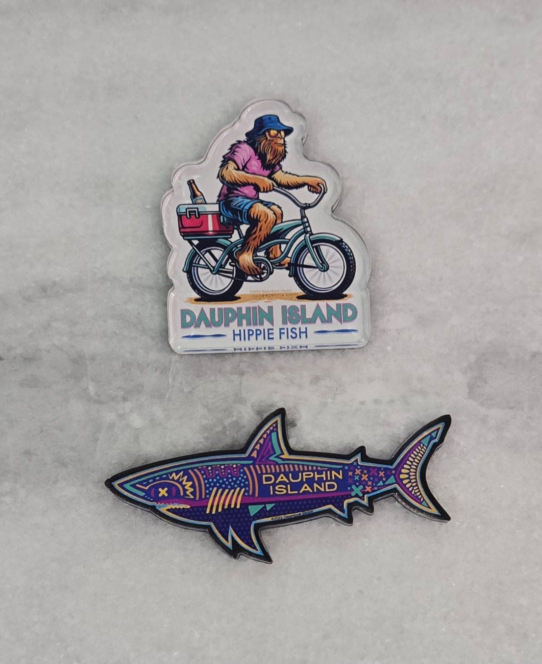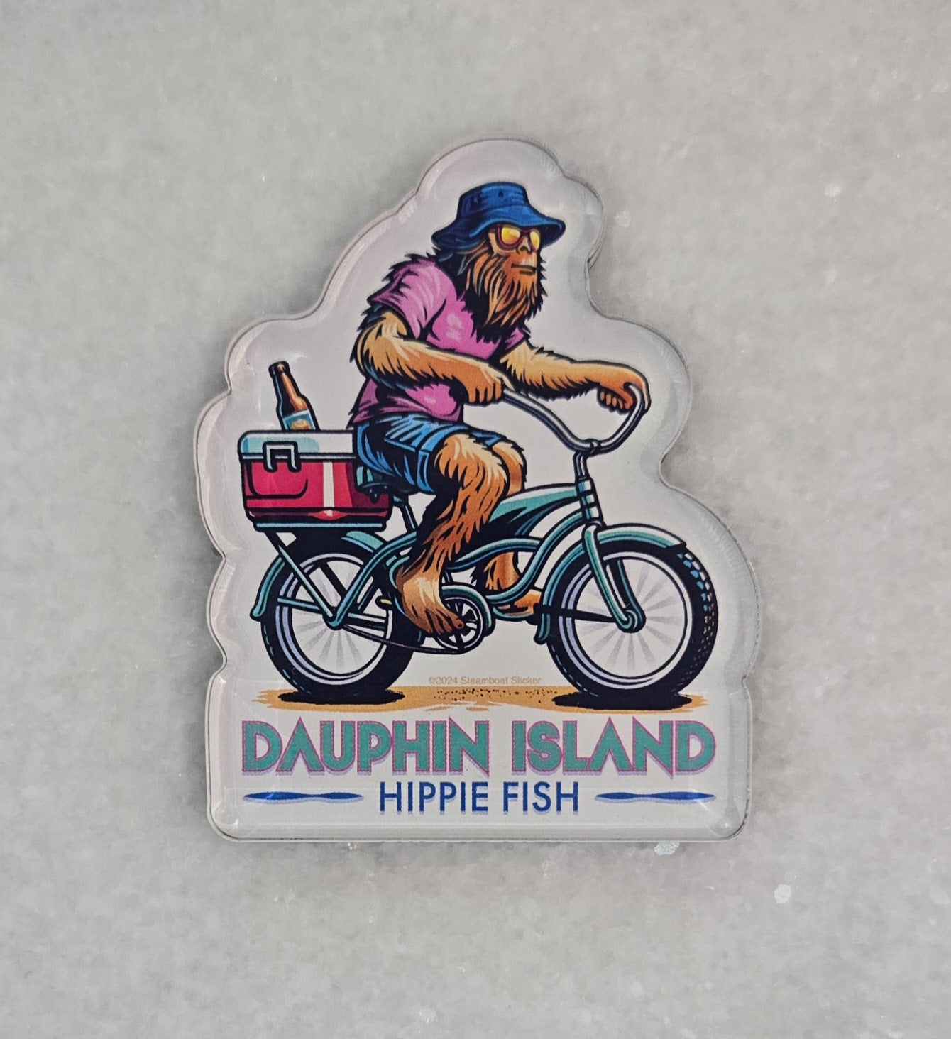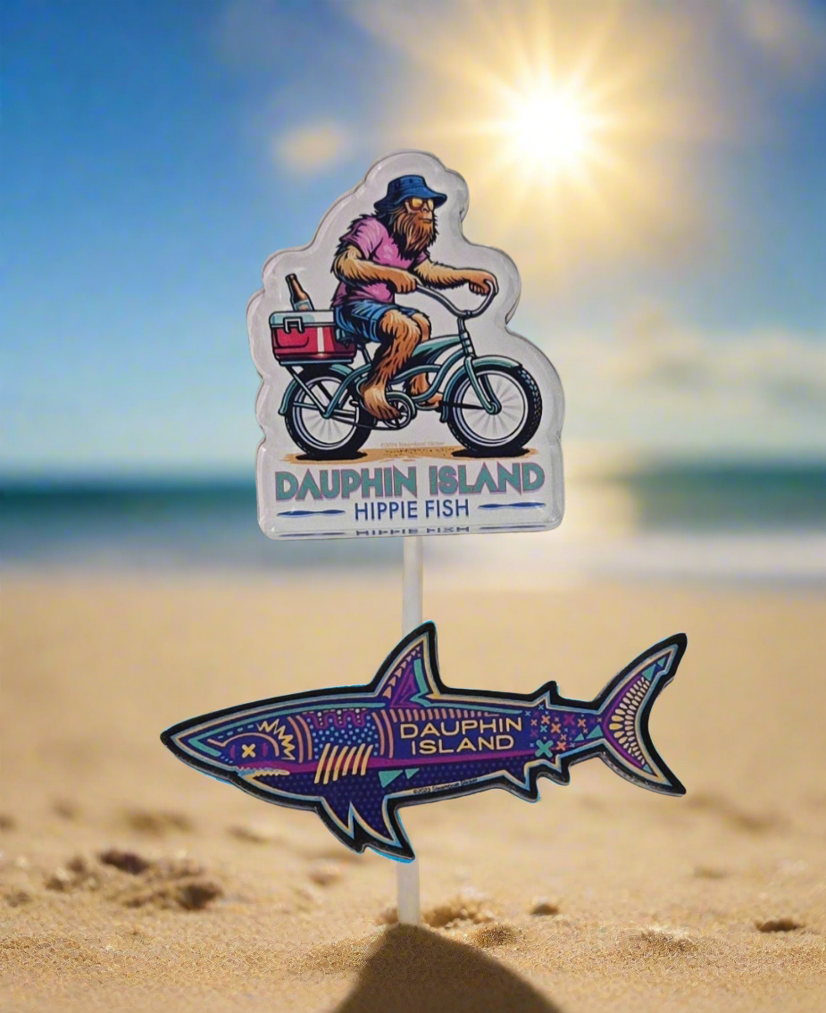 Add a splash of hippie fun to your fridge with our Dauphin Island souvenir magnets! Made in the USA, these acrylic magnet are fully backed by magnets for a secure hold. Get groovy with your fridge decor!