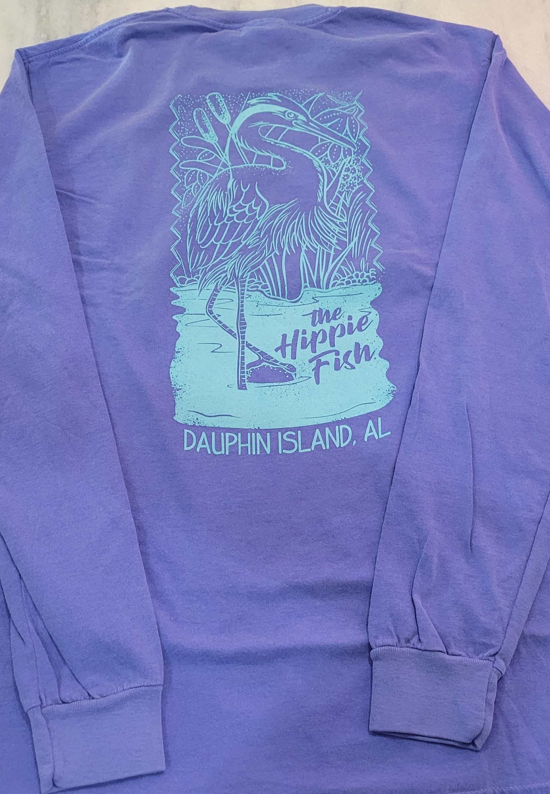This HIPPIE FISH HERON T-shirt is for the fun-lovin' fish-heron in your life. Made of Comfort Colors 100% preshrunk cotton, this long-sleeve T-shirt is comfortable, stylish, and perfect for a life of chillin'! Show your Hippie Fish Heron pride in style!