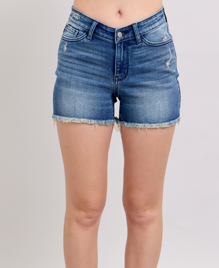 Get ready to turn heads in our Judy Blue high waist V-front shorts! With a flattering mid-rise fit and playful v-front detail, these shorts are perfect for all your summer adventures. The distressed hem adds an edgy touch, while the shield pockets keep your essentials secure. Made with a medium wash for a versatile and chic look!