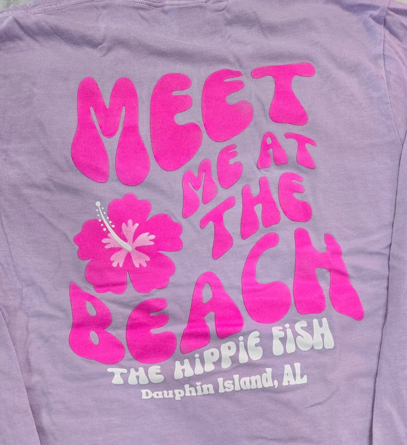 Me and the beach go way back. Get ready for a blast from the past with this MEET ME AT THE BEACH LS T-Shirt! Featuring a retro seventies style logo with a hibiscus flower, and made from 100% pre-shrunk cotton, you're guaranteed to look groovy all summer long!