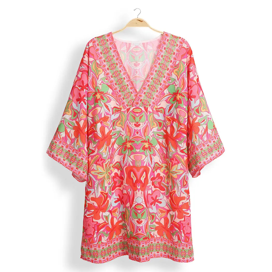 Upgrade your summer style with our Orange Abstract Cover Up! Featuring a playful floral pattern, this cover-up is made of a lightweight blend of 30% cotton and 70% polyester. Perfect for the beach or vacation, and the best part? It's one size fits all! Don't miss out on this must-have summer essential!