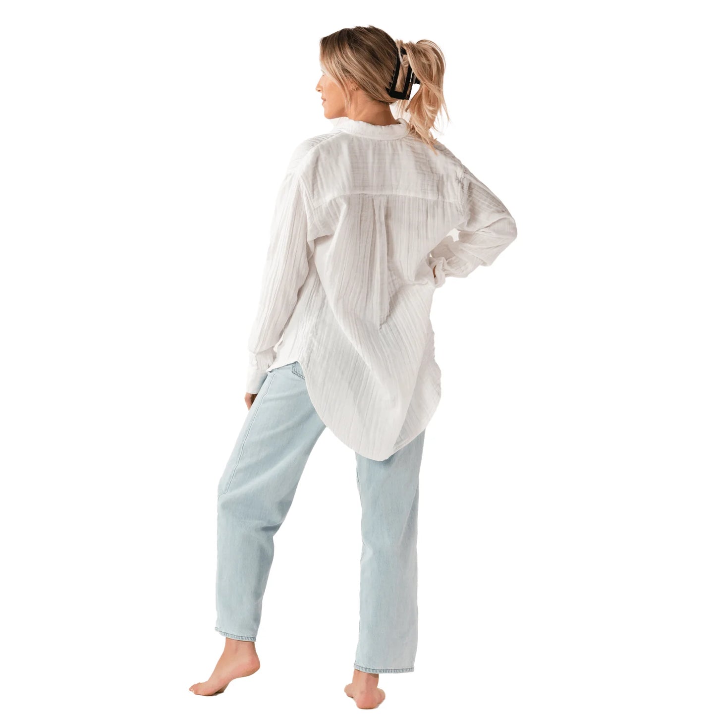 Crafted with breathable 100% cotton and natural coconut shell buttons, this lightweight long sleeve top has an oversized fit.